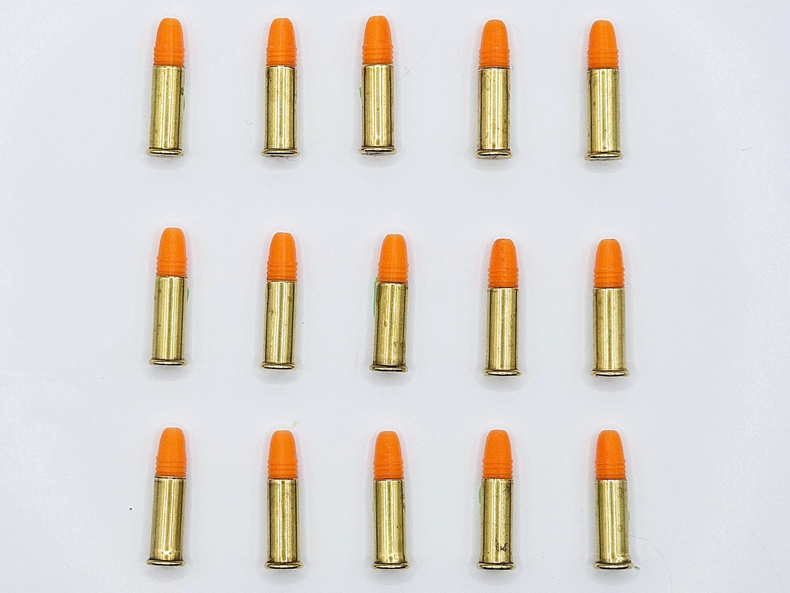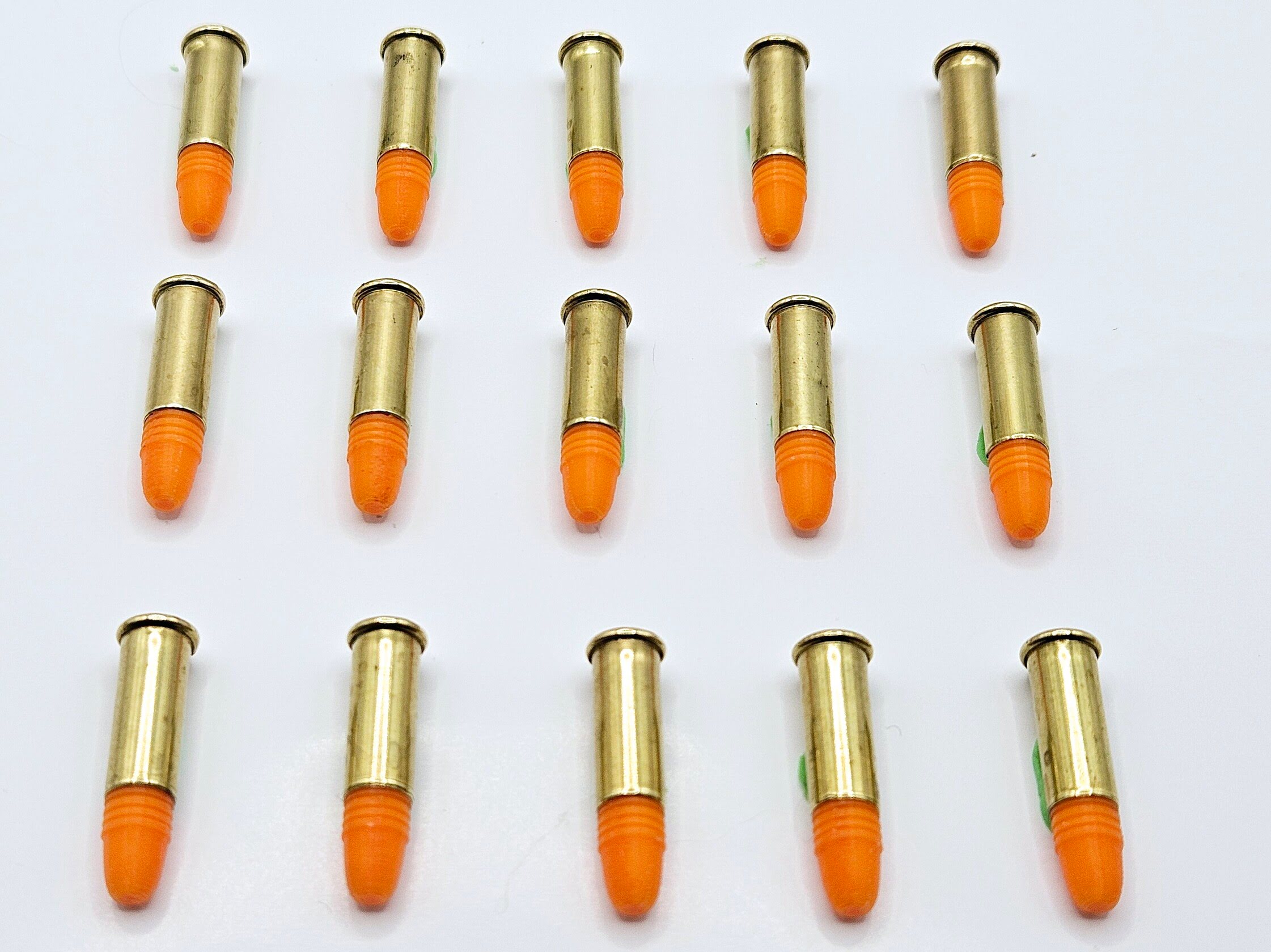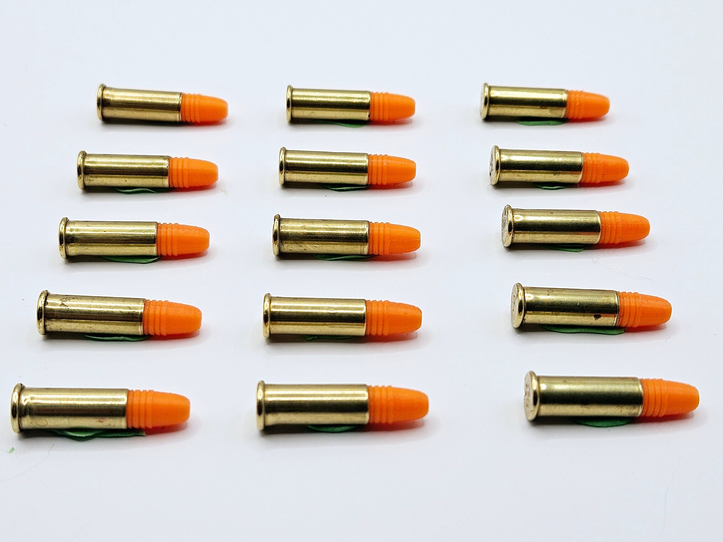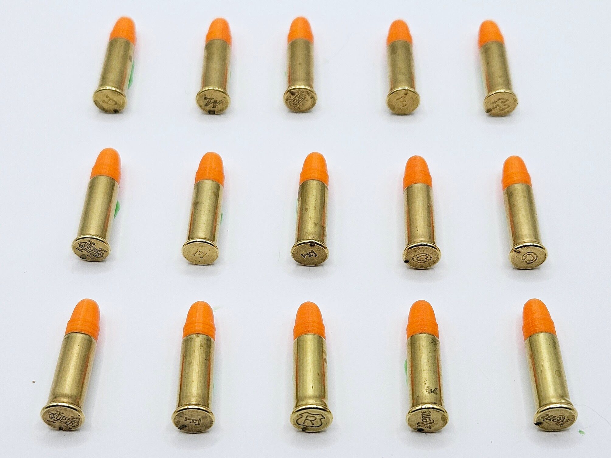 - 22 Long Rifle Snap caps made from once fired 22 LR brass cases with colored plastic bullet.