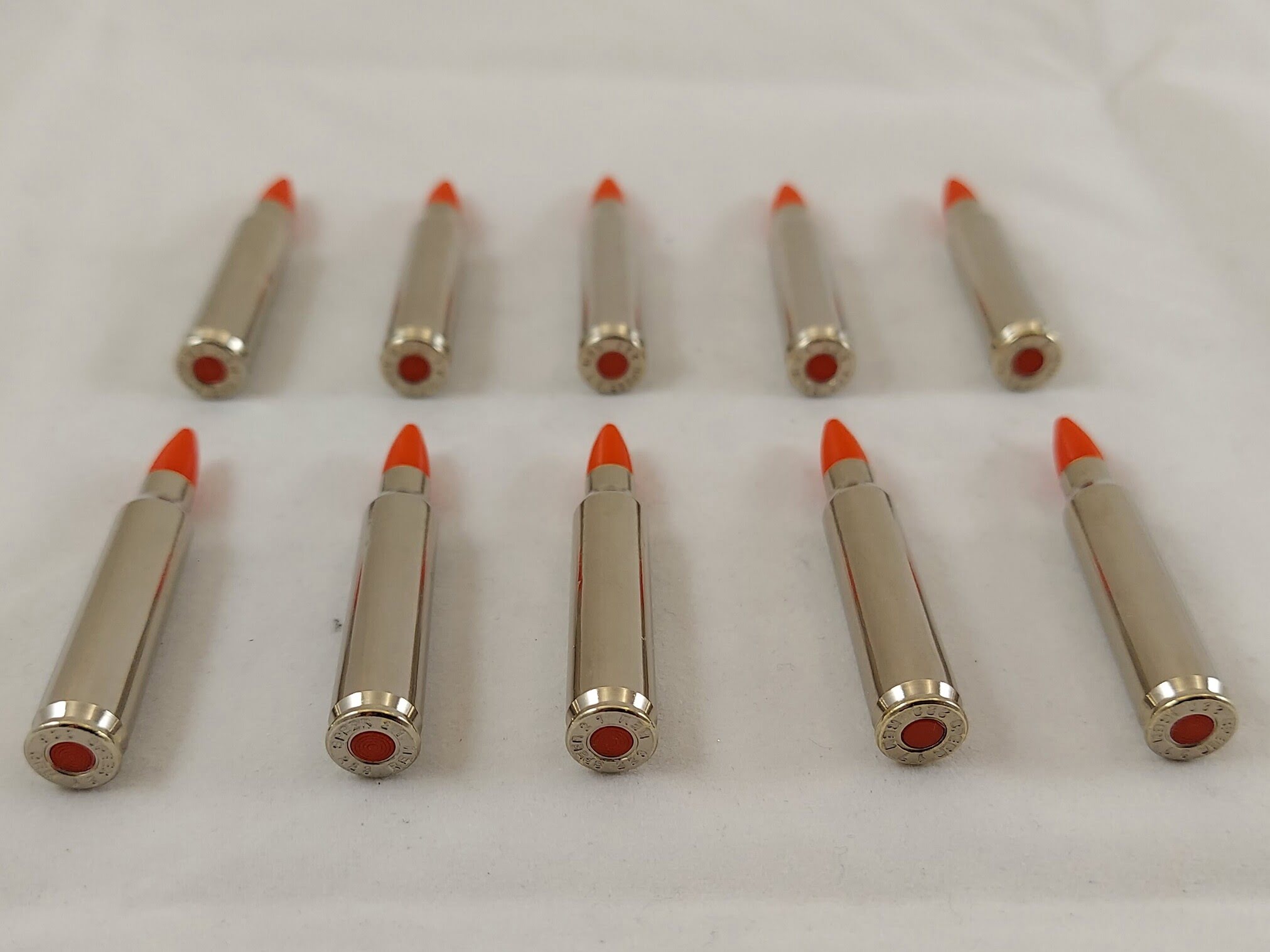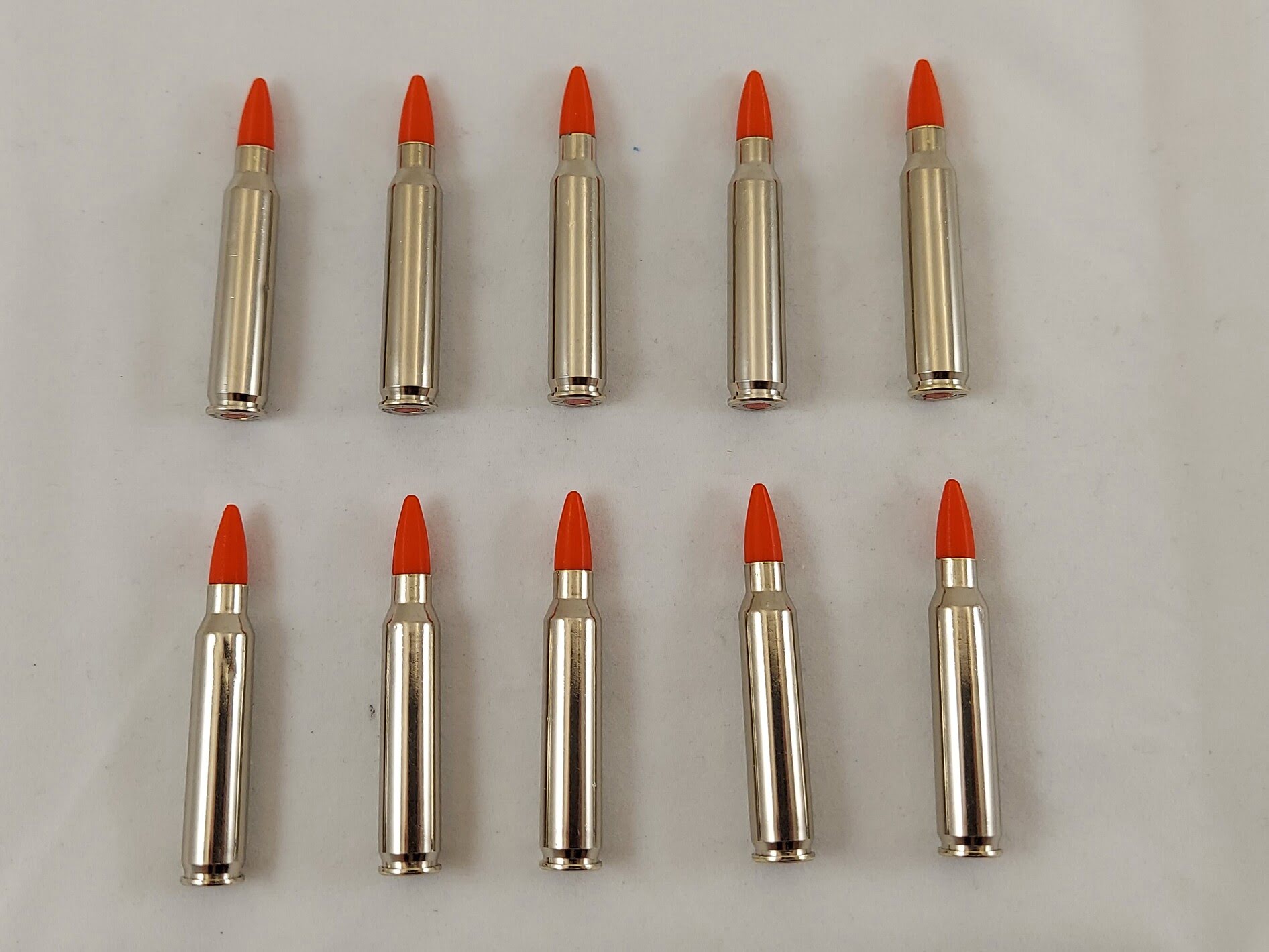 - 223 Remington / 5.56 NATO Snap caps made from new or once fired 223 Remington / 5.56 NATO nickel plated cases with colored plastic bullet and primer pocket filled with colored rubber.