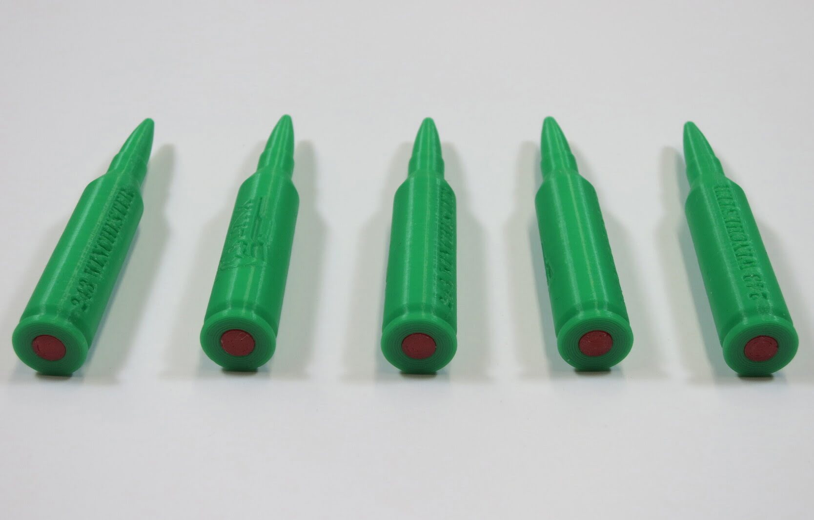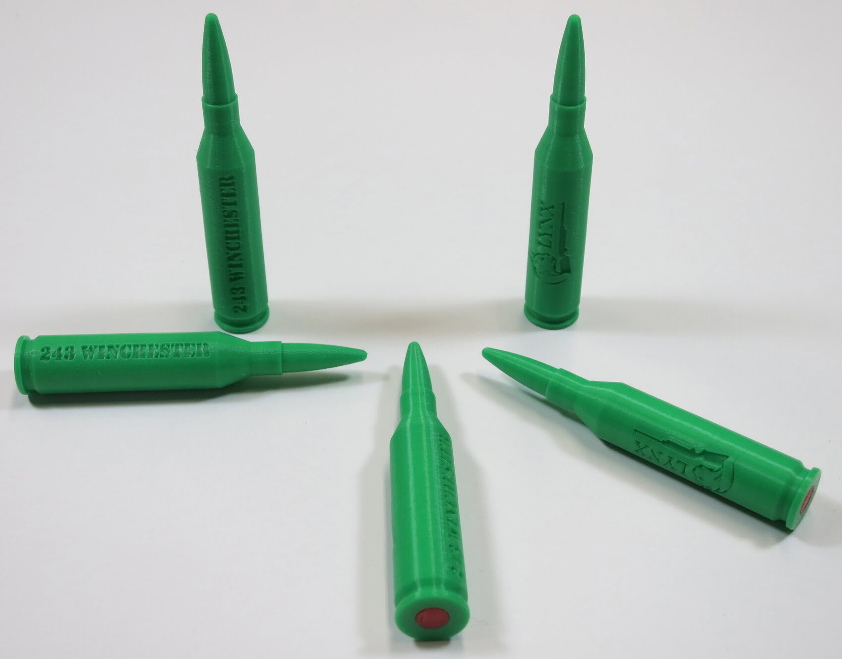 - 243 Winchester high quality plastic dummy rounds with rubber primer