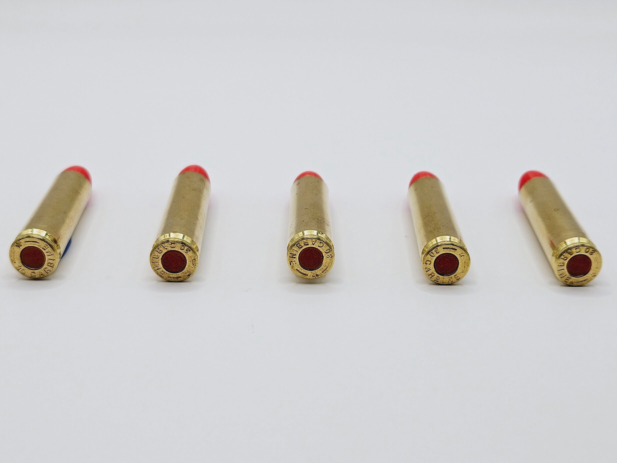 - 30 Carbine Dummy Training Rounds Snap caps made from new or once fired 30 Carbine brass cases with colored plastic bullet and primer pocket filled with colored rubber.